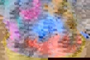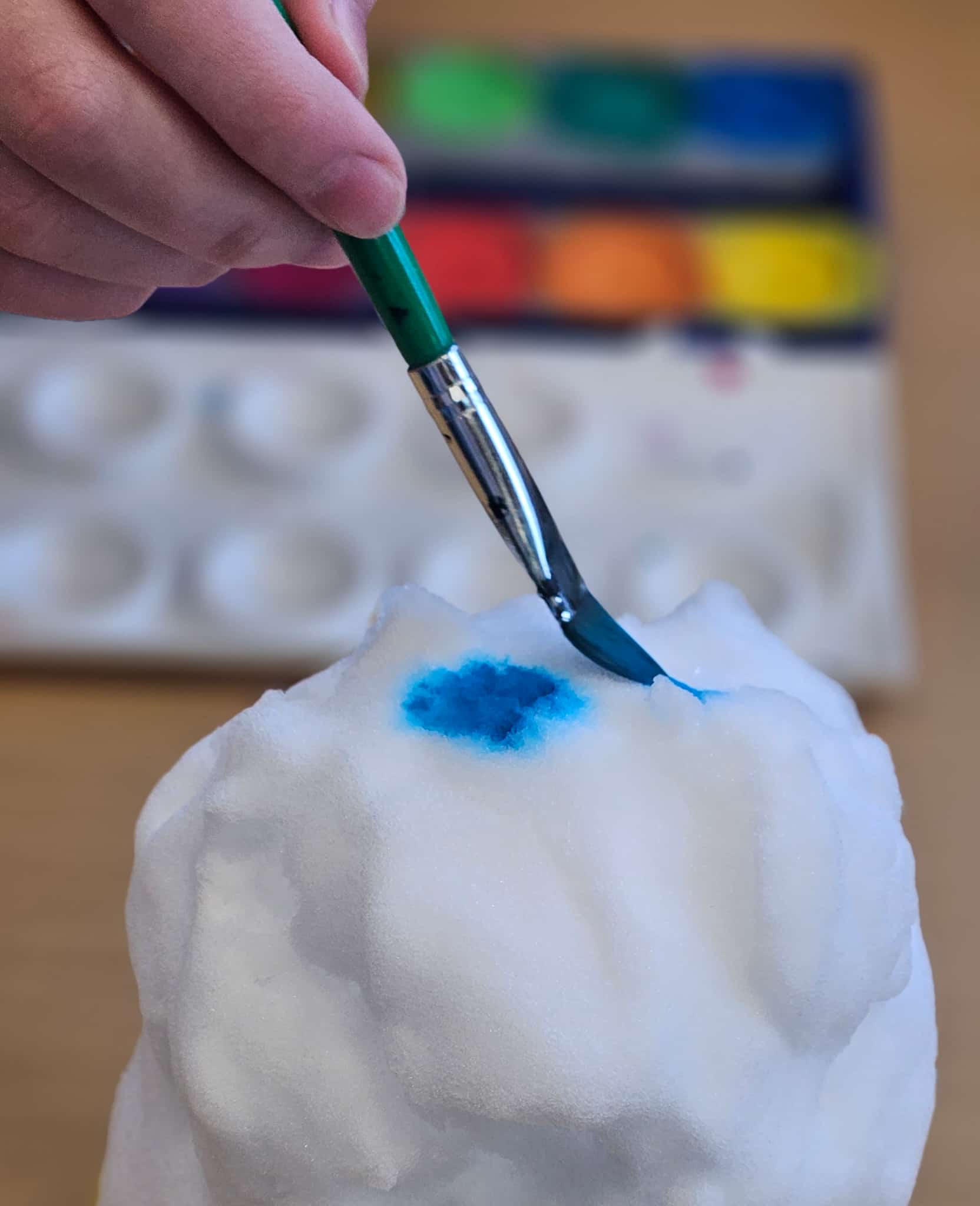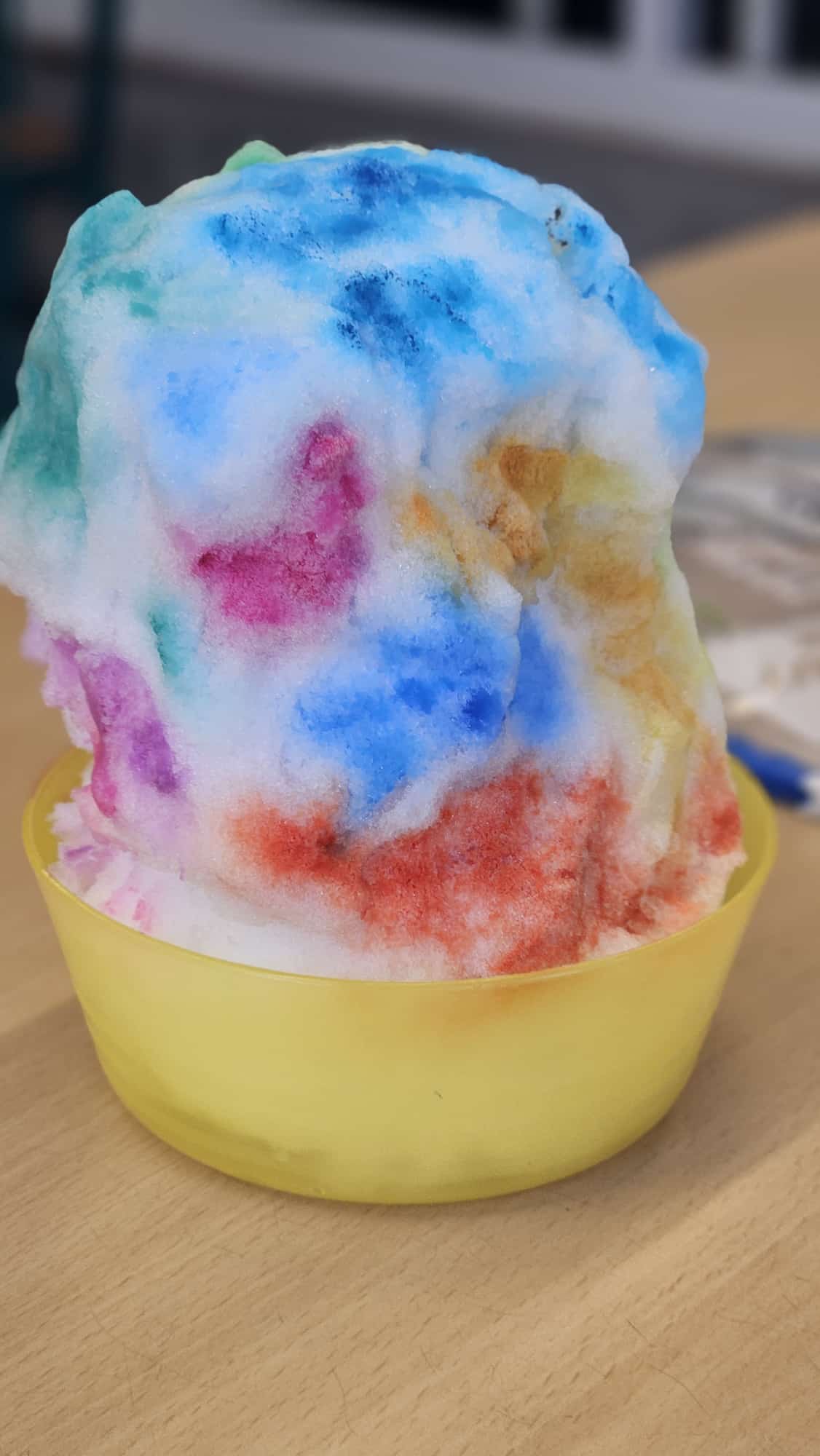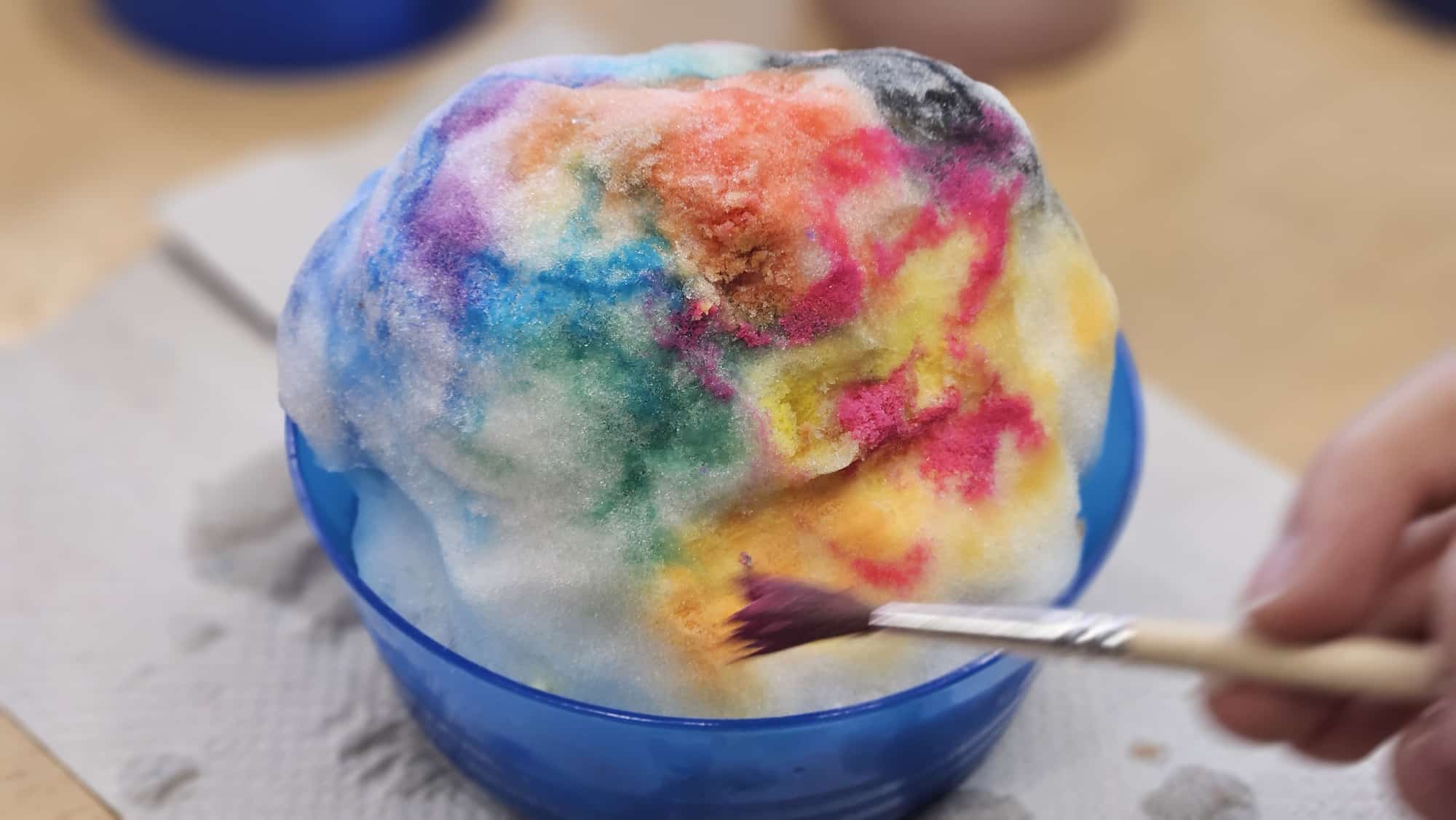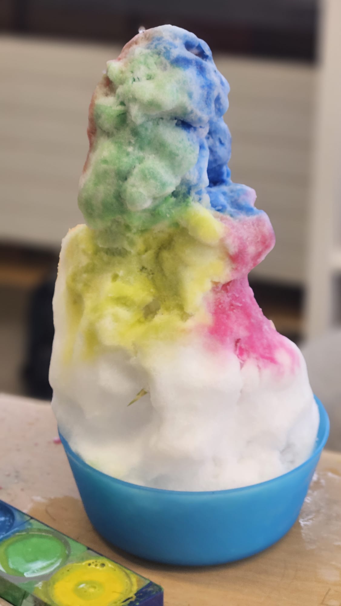 In der Kunststunde mit Frau Terrano bemalten die Schülerinnen und Schüler den heutigen Schnee mit Wasserfarben.