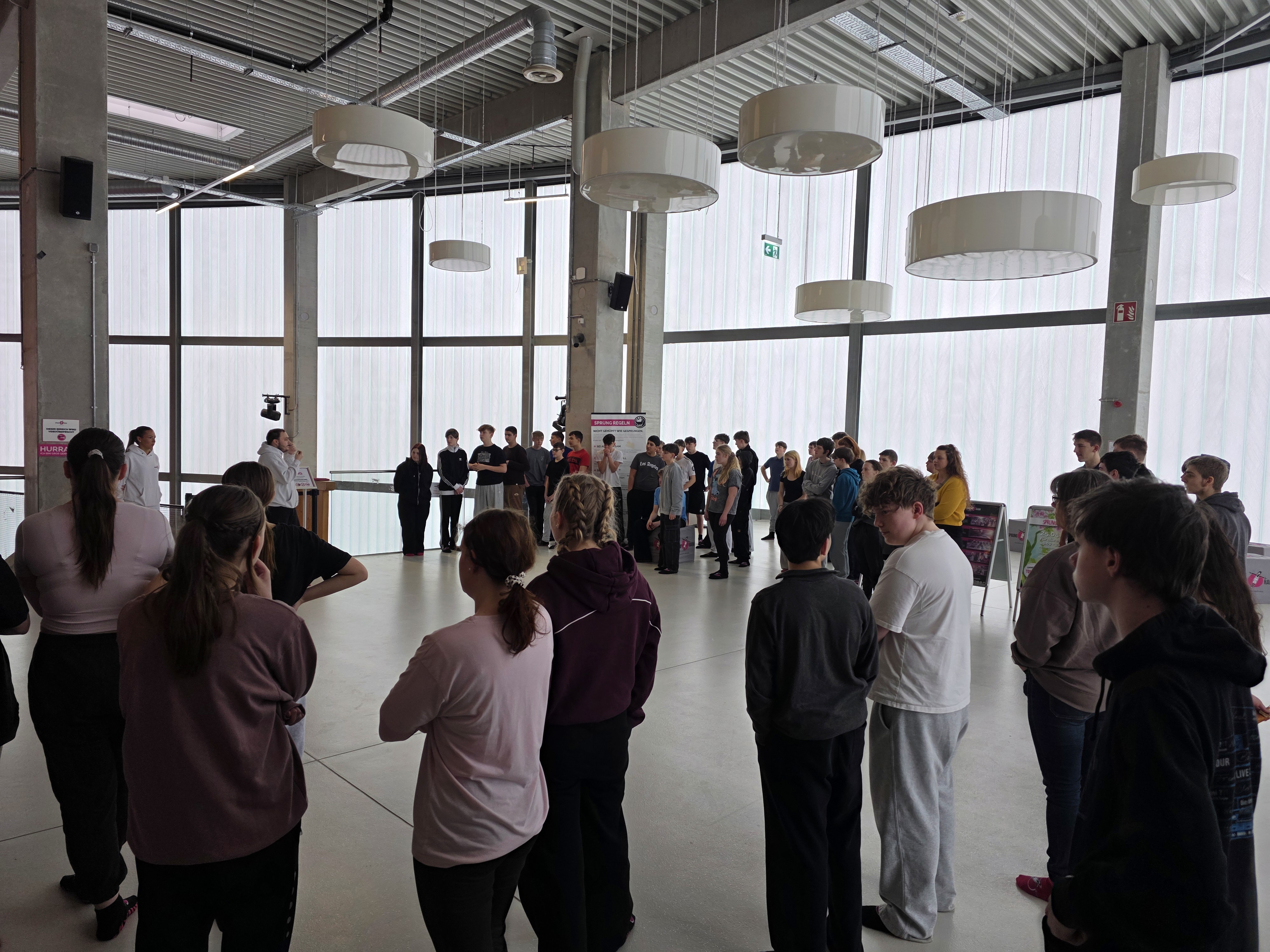 Am 20.02.26 unternahm die gesamte Oberstufe der Roseggerschule Waldbröl einen spannenden Ausflug zum Sprungraum in Troisdorf. Mit rund 90 Personen, bestehend aus SchülerInnen und LehrerInnen, machten wir uns in zwei Bussen auf den Weg.